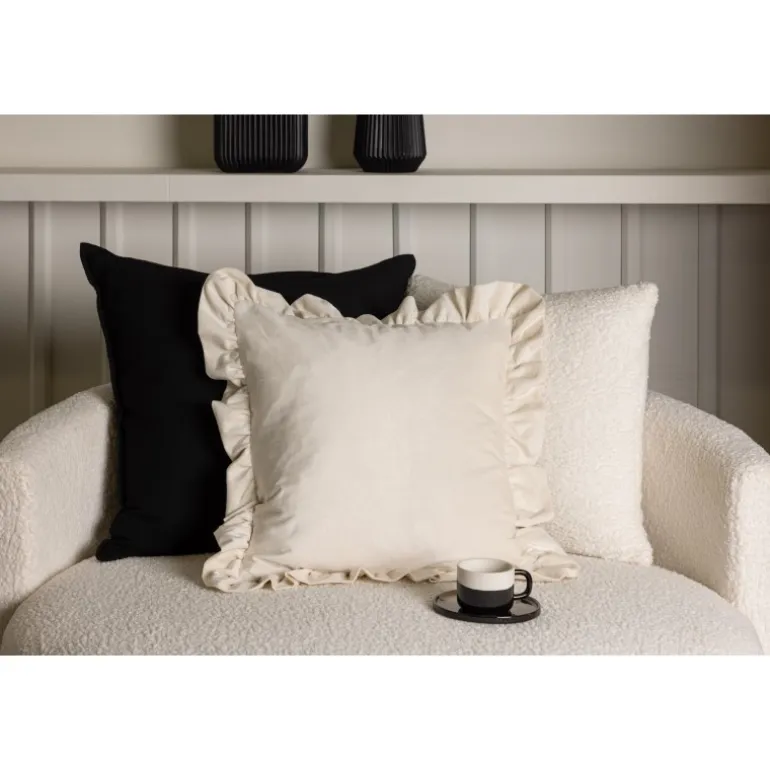 Skab et charmerende indtryk i sofaen eller soveværelset med en stilfuld velourpude fra Hailey-serien! Hailey-serien tilbyder kvalitets pudebetræk i forskellige størrelser og farver – alt for at bedst passe til dine ønsker og din indretningsstil. Pudebetrækket er indrammet af en dekorativ flæsekant og har en skjult lynlås på bagsiden. Velourstoffet giver en lækker glans til puden og får den cremehvide farve til at fremhæve på bedste vis!