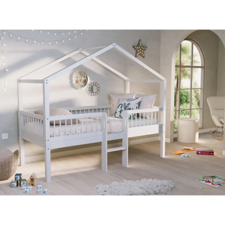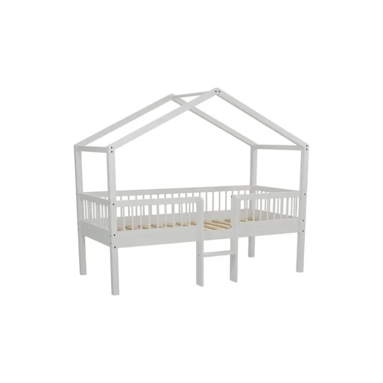 Halvhøj husseng med stige 90 × 200 cm – Forrest Bøg, hvid