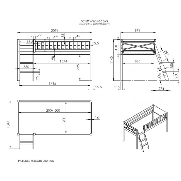 Halvhøj seng 90 x 200 cm – Scott, hvid