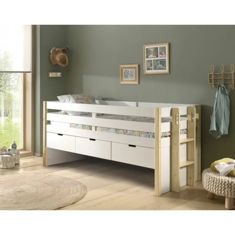 Halvhøj seng 90 x 200 – Margrit, natur/hvid