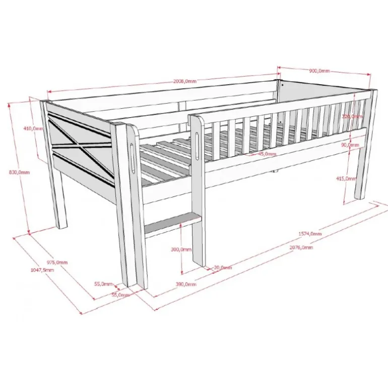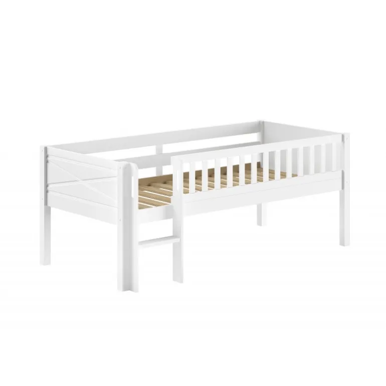 - Praktisk halvhøjde med plads til leg eller opbevaring under sengen