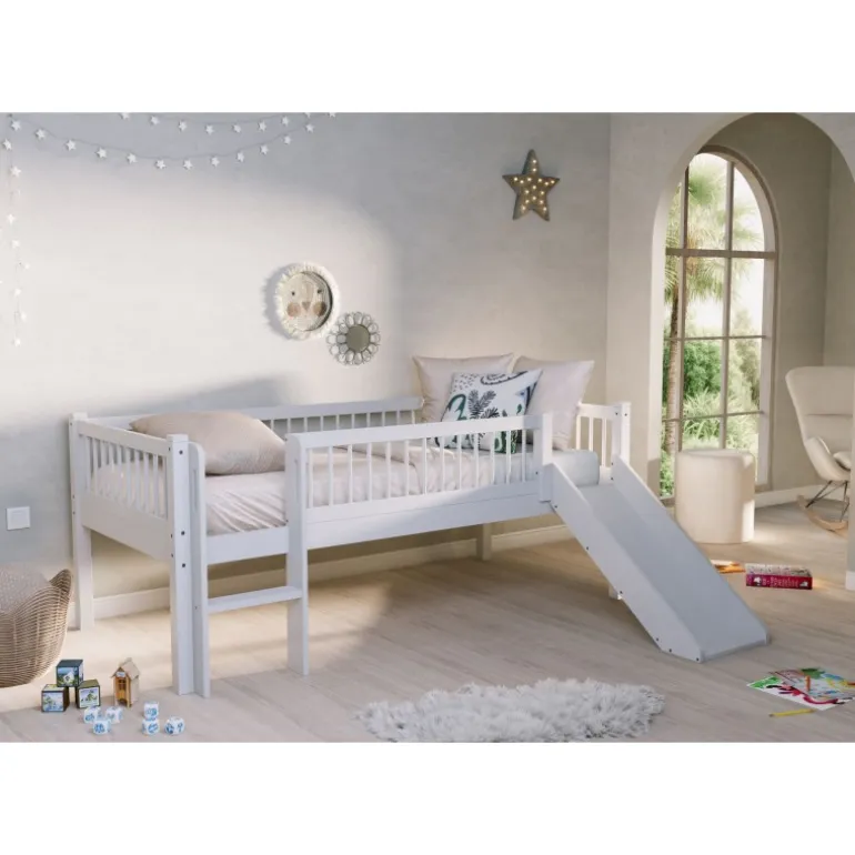 Halvhøj seng med rutsjebane 90 x 200 – Forrest Beech, hvid