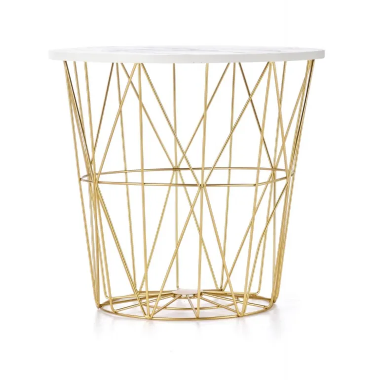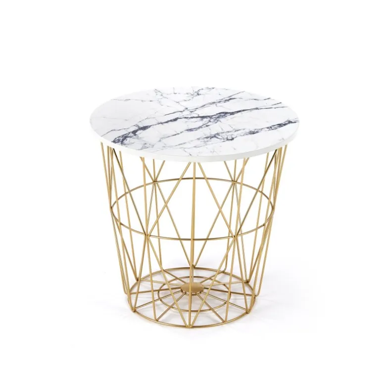 Oplev elegance og funktionalitet med HARISSA_G sofabord i guld og hvid marmor! Dette sofabord er designet med en stilfuld kombination af lamineret MDF og pulverlakeret stål, hvilket sikrer både holdbarhed og æstetik. Med dimensionerne fi 42/41 cm passer det perfekt til enhver stue. Rammen i guld og bordpladen i hvid marmor skaber en luksuriøs atmosfære, der vil imponere dine gæster.