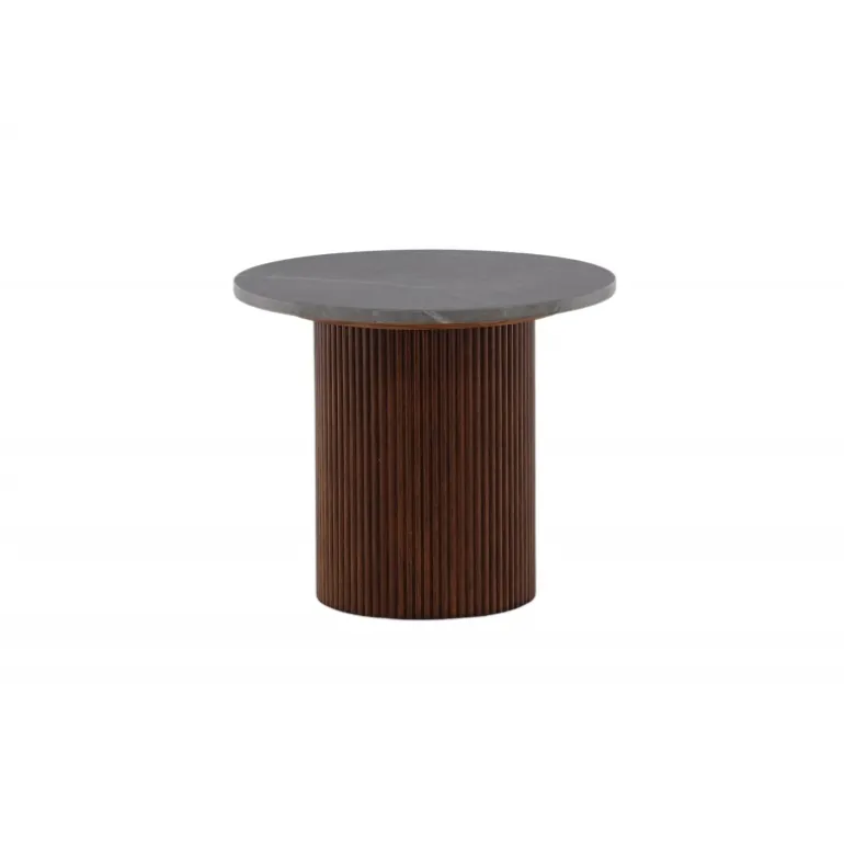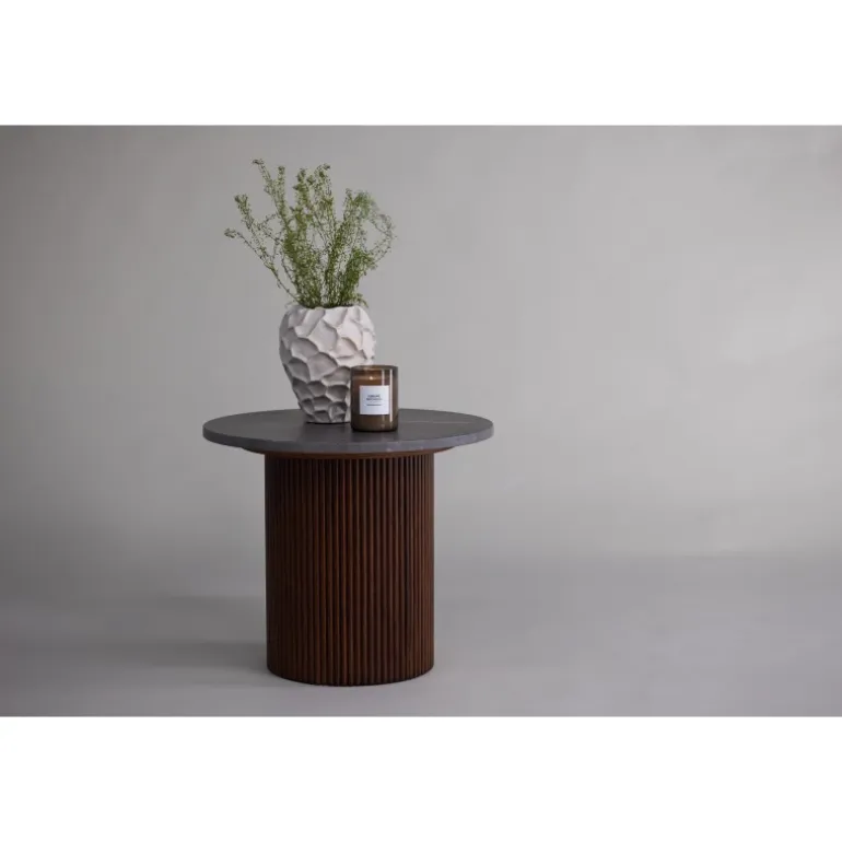 Haron sidebord har et unikt design med en lækker kombination af MDF og asketræ! Dette sidebord tilhører Vind-kollektionen og har en cylinderformet ramme i rillet, mørkebrunt træ og en rund bordplade i grå MDF, som giver et fantastisk liv til øjet. Brug det som et sidebord, aflastningsflade eller piedestal – du bestemmer i dit hjem!