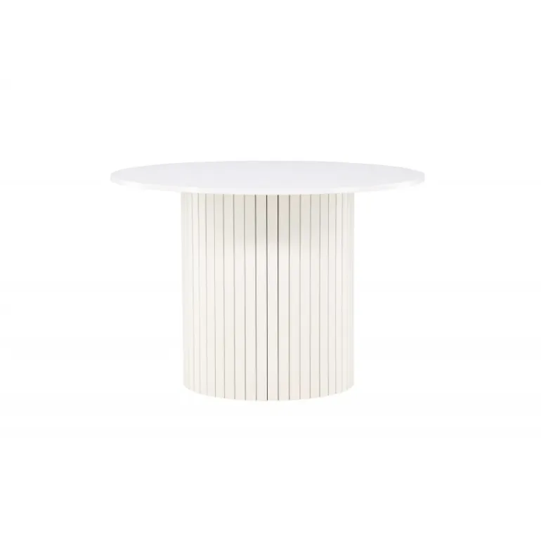 Oplev den enkle skønhed ved vores Haron spisebord. Med en generøs diameter på 110 cm er dette spisebord perfekt til at samle familie og venner til hyggelige måltider og samtaler. Haron spisebordet har et slankt design i hvid farve, der skaber en lys og luftig følelse i dit rum. Fremstillet af MDF-materiale, tilbyder dette bord tilstrækkelig stabilitet til daglig brug. Den runde form gør det nemt at skabe en intim og indbydende atmosfære ved spisebordet. Uanset om det er til hverdagens måltider eller særlige lejligheder, bliver Haron spisebordet et perfekt sted for fællesskab og delte øjeblikke. Giv dit hjem den enkle elegance, det fortjener med Haron spisebordet.
