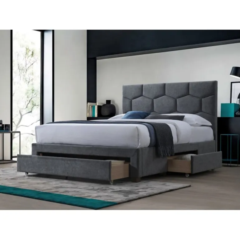 Oplev den ultimative komfort og stil med HARRIET 160 seng med skuffer i grå velour . Denne seng kombinerer elegant design med praktisk opbevaring, hvilket gør den til det perfekte valg til dit soveværelse. Lavet af høj kvalitets stof og solidt træ, garanterer HARRIET sengen både holdbarhed og et luksuriøst udseende. Sengen leveres uden madras, men du kan vælge mellem de valgfri madrasser POLARIS 160 eller SYRIUSZ 160 for ekstra komfort.