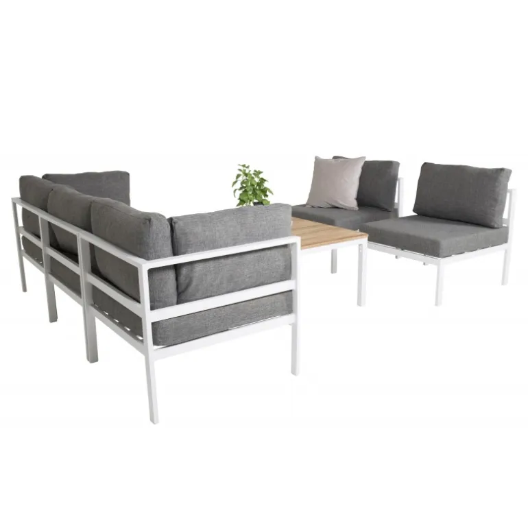 Sofa Sæt Copacabana er en moderne og stilfuld løsning til din terrasse. Dette sæt består af en sofa, der kan omdannes til en hjørnesofa eller bruges som en sofa med to tilhørende lænestole. Et sofabord fra Brasilia serien er inkluderet i sættet. Grå, bløde og godt polstrede hynder medfølger. Skab et hyggeligt område med masser af plads til socialt samvær!