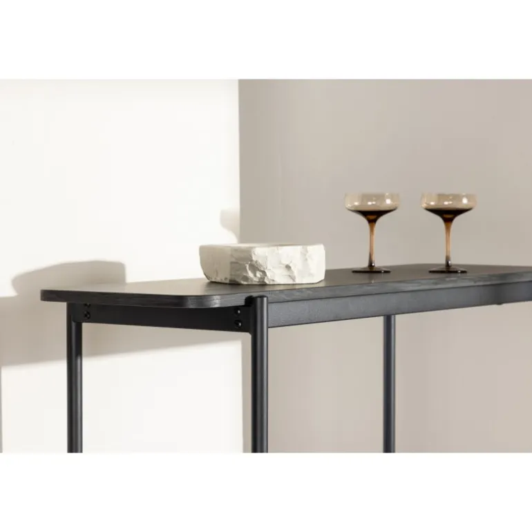 - Smal sort stålramme: Stilfuldt og holdbart design.