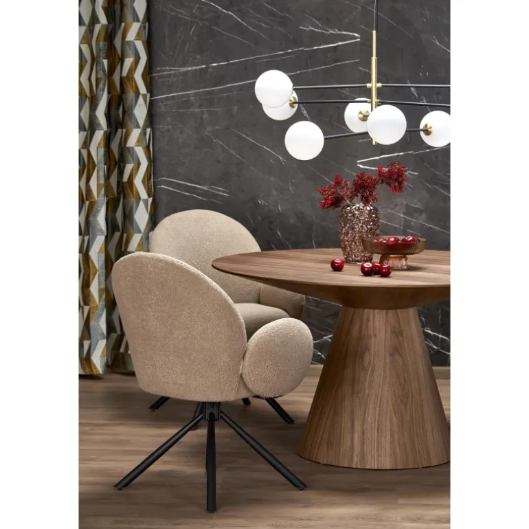 Oplev elegance og funktionalitet med HENDERSON rundbord i valnød. Dette bord er designet til at være både stilfuldt og holdbart, hvilket gør det til det perfekte valg til enhver spisestue eller stue. Med en diameter på 136 cm og en højde på 78 cm tilbyder det rigelig plads til hyggelige sammenkomster eller arbejdssessioner. Bordet er fremstillet af MDF med en naturlig finer, hvilket giver det et sofistikeret udseende og en robust konstruktion. Den smukke valnødde farve tilføjer varme og karakter til dit hjem.