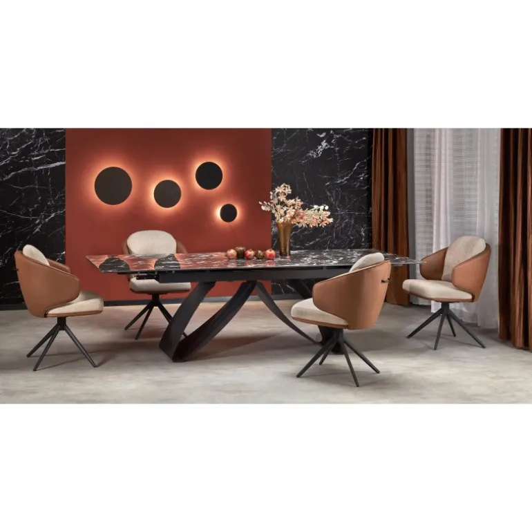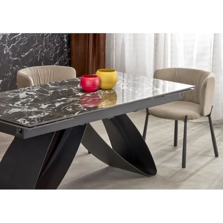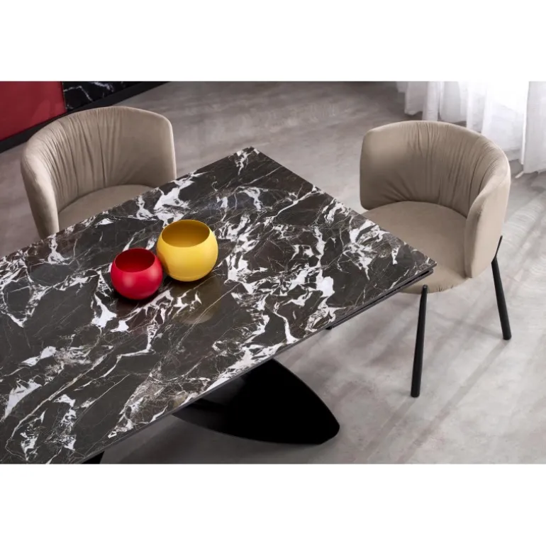 Oplev elegance og funktionalitet med HILARIO Spisebord med udtræk. Dette stilfulde bord er designet til at passe ind i enhver moderne boligindretning. Med en justerbar længde fra 180 cm til 260 cm kan du nemt skabe plads til flere gæster. Bordpladen er fremstillet af holdbar sinteret sten med et elegant Sort marmormønster, mens benene er lavet af robust pulverlakeret stål i Sort. HILARIO Spisebord med udtræk kombinerer estetik og styrke, hvilket gør det til et ideelt valg for både daglig brug og særlige lejligheder.