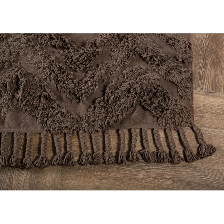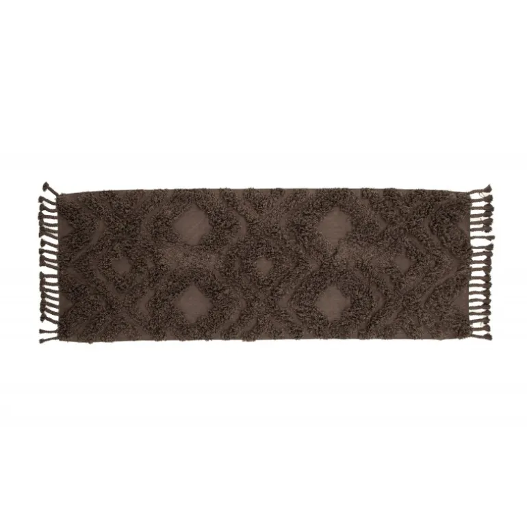 - Moderne vintage design: Slankt brunt tæppe med tuftet mønster.