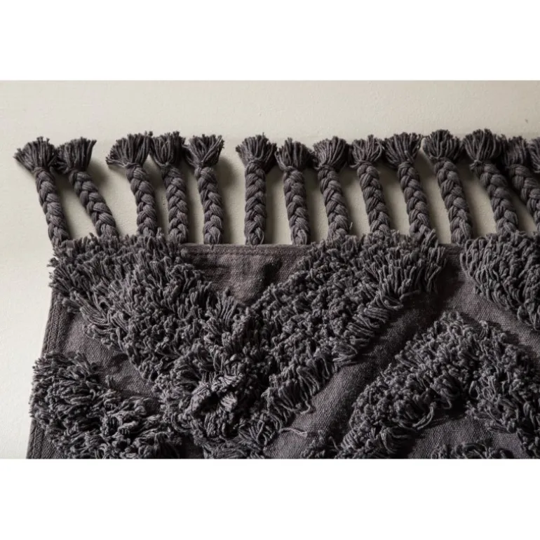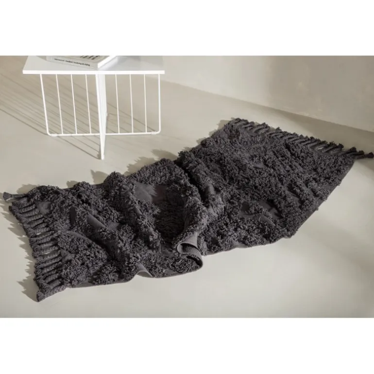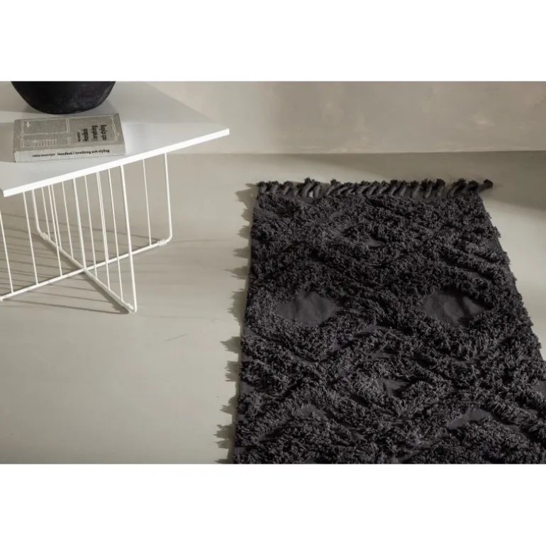 Skab en hyggelig atmosfære i dit hjem med et tæppe, der giver et moderne look til interiøret og en varm følelse. Hilma tæppet fra Hilma-serien er en lang, smal, rektangulær drøm i moderne vintage, her i en sodet mørkegrå farve. Tæppet har et tuftet mønster i højere luv og en flettet frynsekant langs de korte sider, der bidrager til et klassisk design kombineret med det trendy. Materialets holdbare egenskaber gør tæppet velegnet til de fleste rum. Placer det alene i gangen eller i stuen for at løfte stilen et par trin op! Målet er: 200×70 cm.