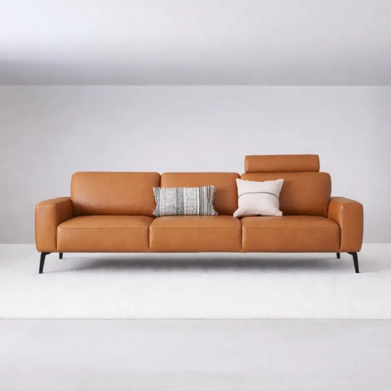 Overfladen er behandlet med en beskyttende coating, hvilket gør læderet mere modstandsdygtigt over for pletter, væsker og sollys. Det betyder, at sofaen holder sig pæn i mange år – også i en travl hverdag med børn, gæster eller husdyr.