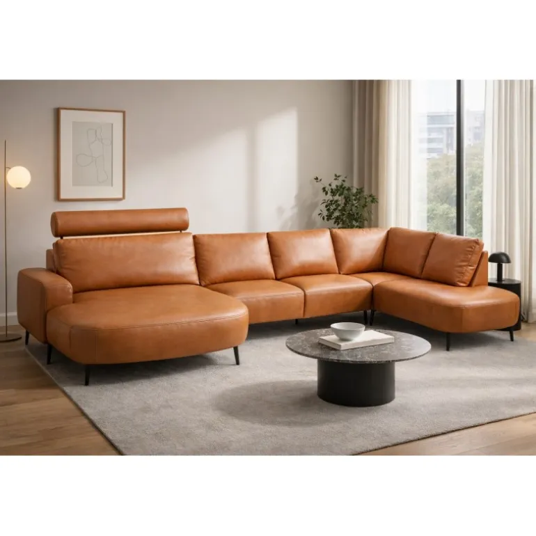 Hjort Knudsen Lolland læder U-sofa Venstrevendt
