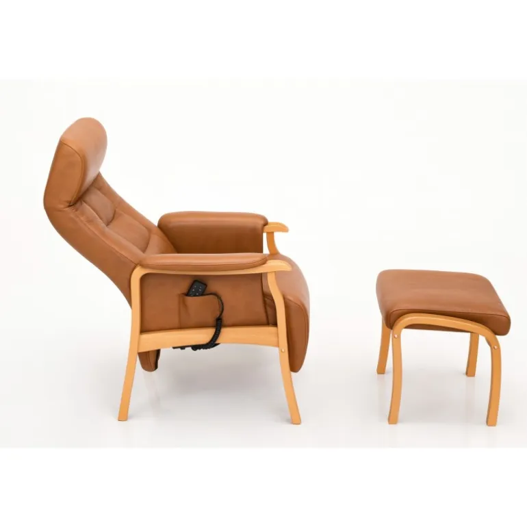 Opbygningen af det kraftige træstel og ”løft op funktionen” til når man skal rejse- eller sætte sig, hvilket gør den ideel til dage med behov for aflastning af kroppen.
