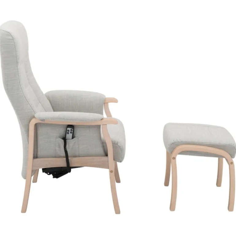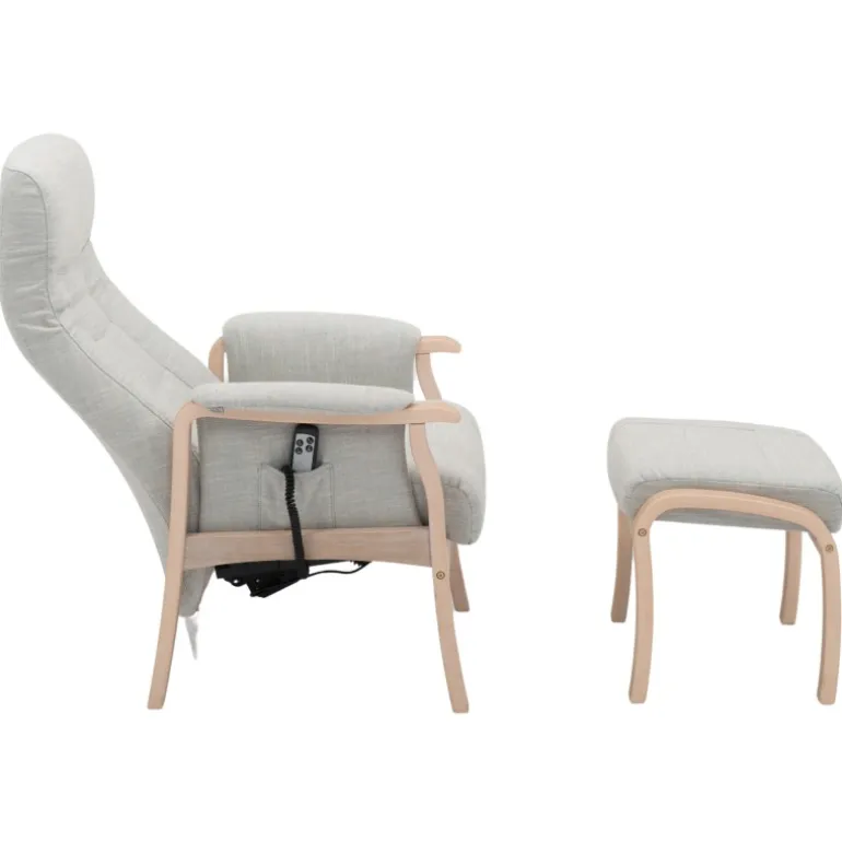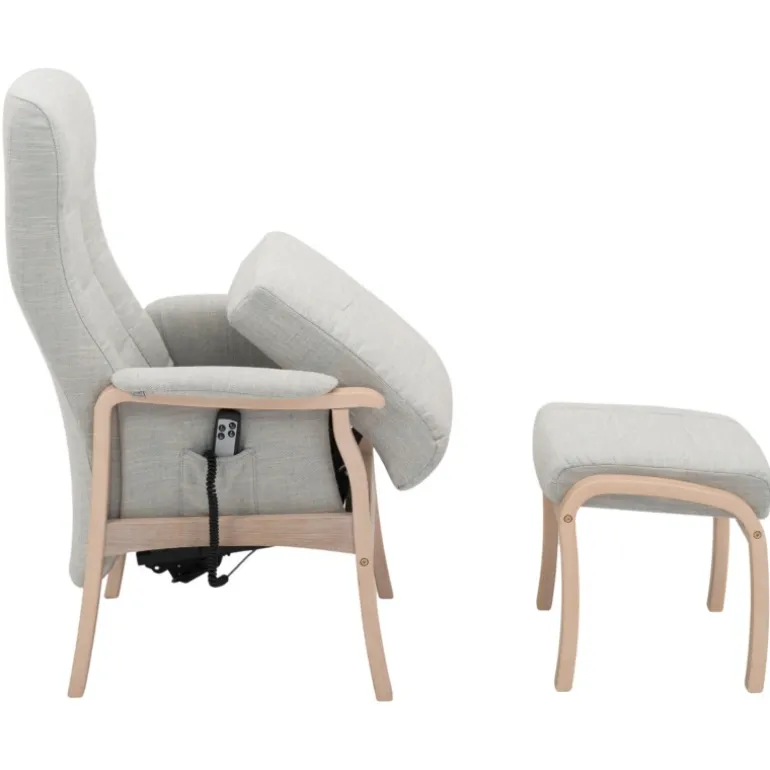 Opbygningen af det kraftige træstel og ”løft op funktionen” til når man skal rejse- eller sætte sig, hvilket gør den ideel til dage med behov for aflastning af kroppen.