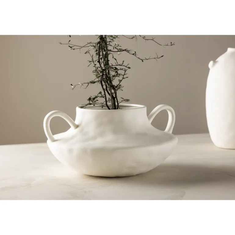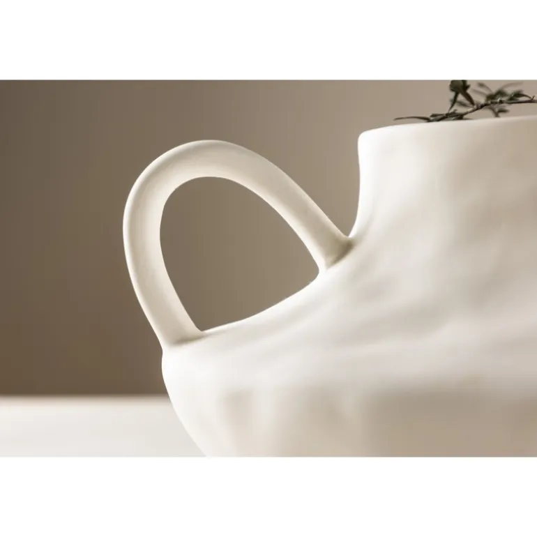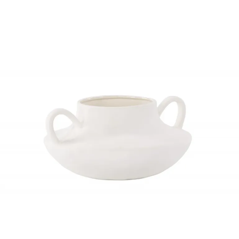 Mød Holda, den elegante hvide keramikkrukke, der tilføjer et strejf af sofistikering til dit hjem. Fremstillet af stentøj, bliver Holda mere end blot en plantekrukke; den transformeres til et stilfuldt udtryk for dine yndlingsblomster. Med sit glatte, runde design og karakteristiske løkker på hver side kombinerer Holda form og funktion problemfrit. Den hvide overflade udstråler elegance, hvilket gør den til et alsidigt tilbehør til alle indretningsstile. Plant dine yndlingsblomster i Holda og placer den på bordet for at fremvise dens unikke charme. Uanset om den bruges som en enkeltstående krukke eller som en del af en samling, bringer Holda et moderne touch til dit hjem. Forhøj din indretning med denne slanke hvide krukke og lad Holda være den perfekte beholder til dine botaniske skønheder.