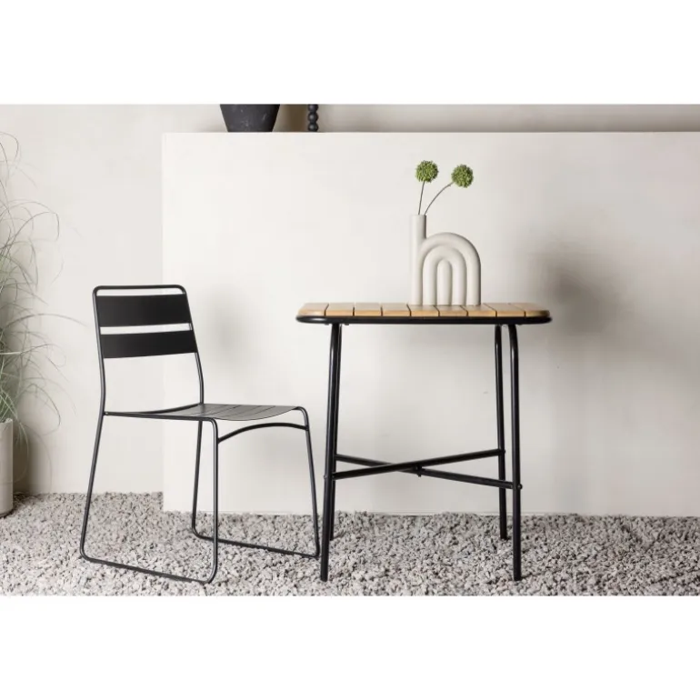 Holmbeck cafébordet er lige så stilfuldt som det er holdbart! Dette bord har en moderne, ribbet bordplade i akacietræ og en minimalistisk base i sort stål. Det gennemtænkte skandinaviske design giver dig et cafébord, der ubesværet passer ind i de fleste indretningsstile og står tidens test. Sæt din kaffe frem og nyd afslappede øjeblikke sammen omkring et charmerende cafébord!
