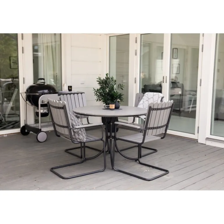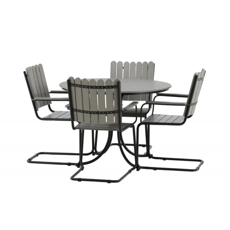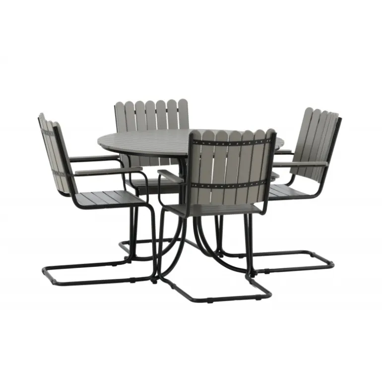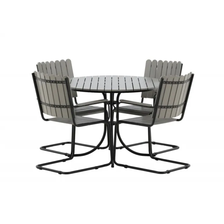 Skab magiske øjeblikke i haven! Oplev vores populære Loungesæt – Havemøbelsæt fra Holmsund-serien – en perfekt blanding af moderne elegance og bæredygtighed, der indbyder til hyggelige stunder i din have! Dette runde spisebord er en sand blikfanger med sit charmerende design og vil uden tvivl få dig til at føle dig hjemme og stolt af din terrasse. Lavet af holdbart sort stål og med stole og bord i dejlig grå akacie, er Holmsund Loungesæt – Havemøbelsæt klar til at møde enhver vejrudfordring. Dens robuste konstruktion giver dig sikkerhed for langvarig brug. Stolene er ikke kun smukke, men også utroligt komfortable med en let gyngefunktion, der giver dig en afslappende siddeoplevelse. Her kan du nyde behagelige måltider i lang tid. Med Holmsund Loungesæt – Havemøbelsæt forvandler du også din have til et vidunderligt sted, hvor du kan skabe mindeværdige øjeblikke. Inviter dine kære til en magisk atmosfære, som dette Loungesæt – Havemøbelsæt giver med sin elegance og indbydende følelse. Giv din have det perfekte touch – Bæredygtighed, komfort og elegance – alt i ét!