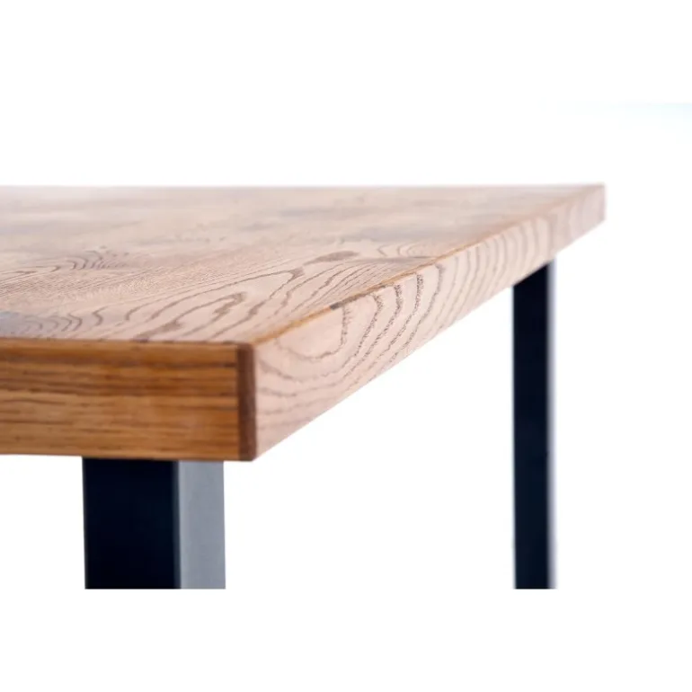 - Æstetisk og moderne: Lys eg-finish på bordpladen og Sorte stålben giver et elegant og moderne udseende.
