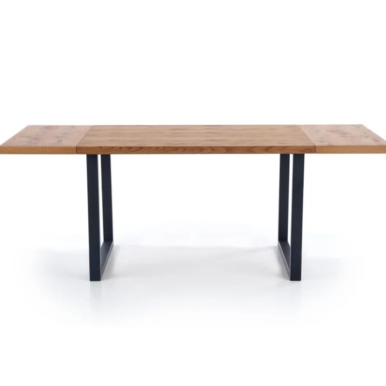 HORUS Spisebord med udtræket er den perfekte løsning til ethvert moderne hjem. Med dimensioner på 126÷206/80/76 cm kan bordet nemt udvides for at imødekomme flere gæster. Bordpladen er lavet af finérplade med massivt træ på kanterne, og benene er fremstillet af pulverlakeret stål. FARVE: Bordplade i lys eg, ben i Sort. Oliebehandlet bordplade kræver særlig vedligeholdelse, detaljer findes i manualen.