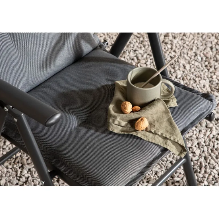 Sid ekstra komfortabelt i din udendørsgruppe! Denne grå stolehynde er tilpasset vores klapstole. På bagsiden er der to vedhæng, som hjælper hynden med at blive ordentligt på plads. Forlæng de dejlige måltider, når du har mulighed for at sidde godt i lang tid!