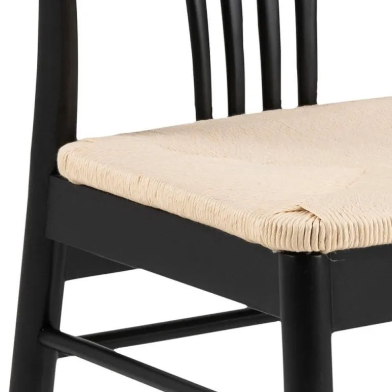 YORK Chair w/plaited paper rope seat, birch wood black stained WL600 (2pcs./ctn) (ASS)