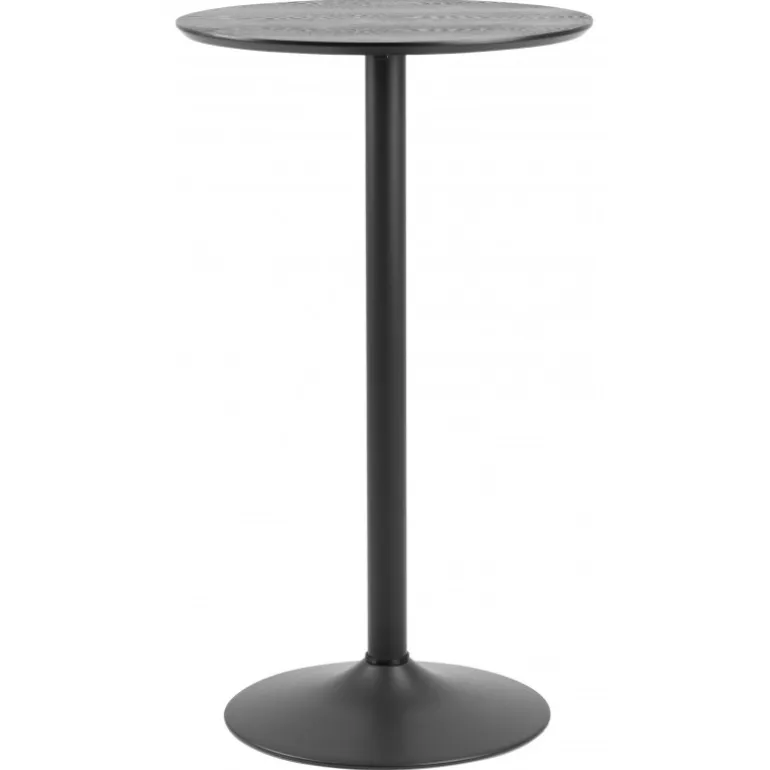 IBIZA round bar table MDF top, ash veneer, black lacqer, trumpet foot, base metal powder coated rough, matt black, Ø:60 H:105 cm