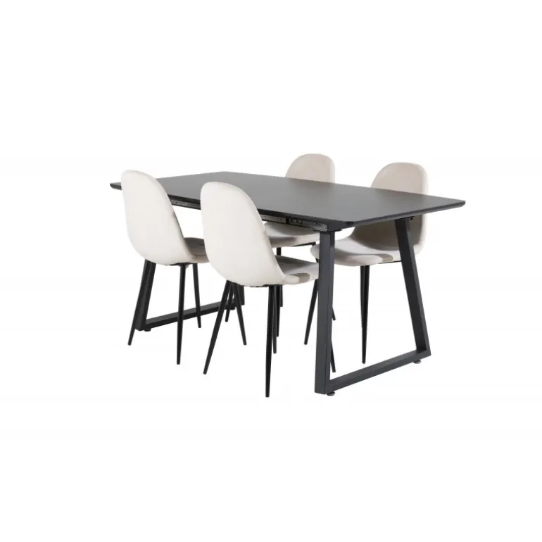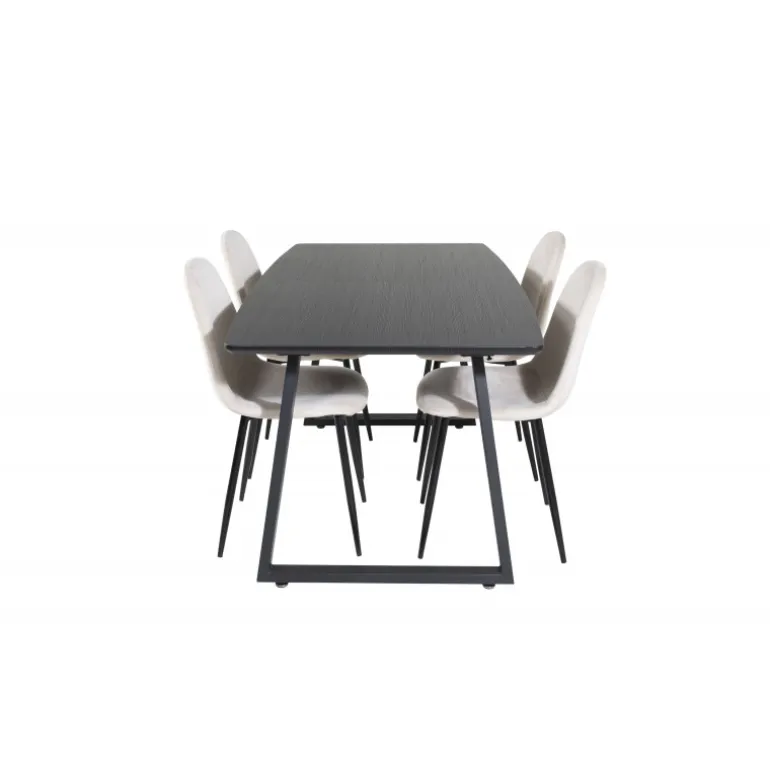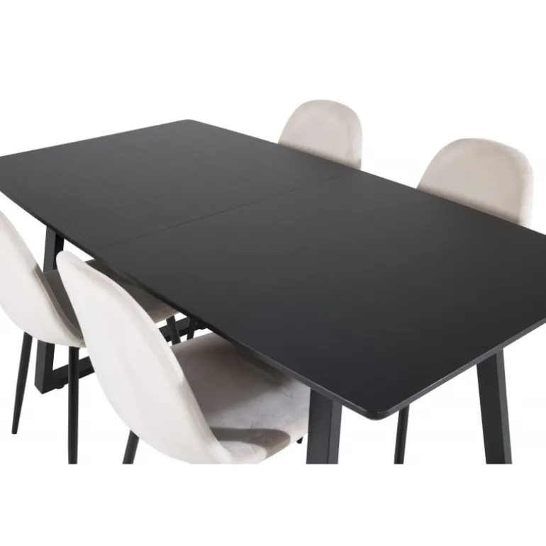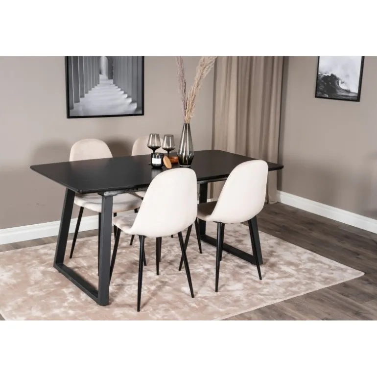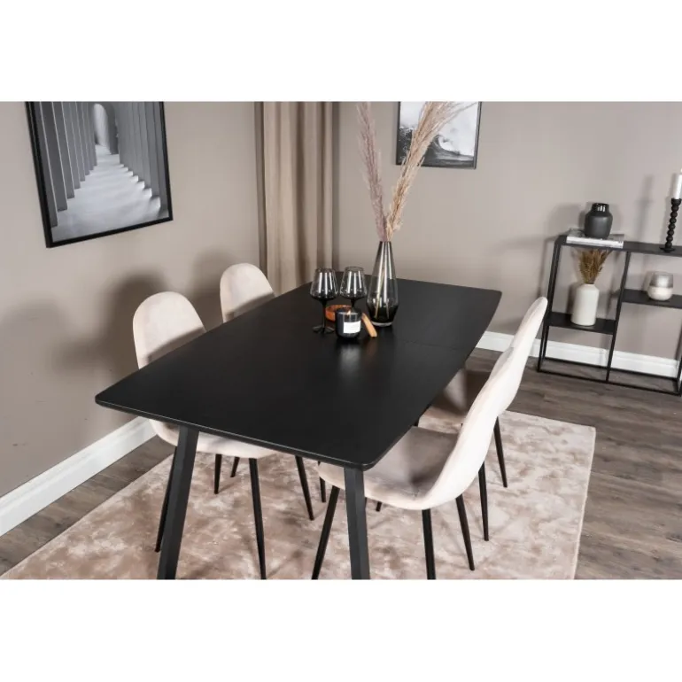 Vores populære spisebord, Inca, med elegant sort bordplade kombineres perfekt med komfortable fløjlsstole fra Polar-serien. Et stilfuldt Spisebordssæt i tidløs farveskala og med en moderne følelse – lige så godt til en hyggelig hverdag som til en dejlig fest.