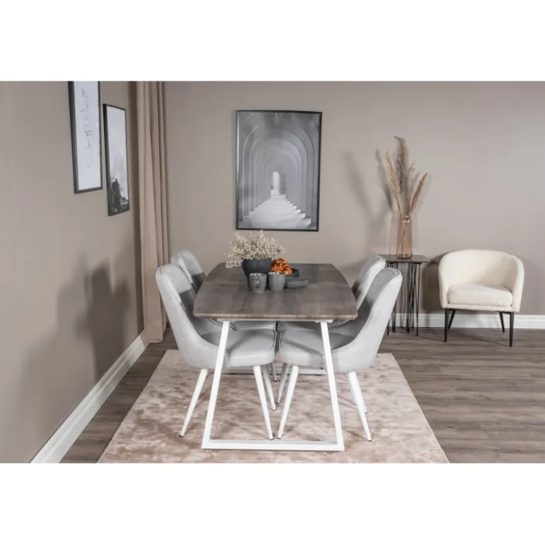 - Moderne design: Inca Spisebordssæt kombinerer et stilfuldt bord med elegante fløjlsstole.