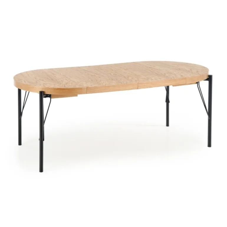 Oplev INFERNO Spisebord med udtræk – et stilfuldt og funktionelt møbel til dit hjem. Med dimensionerne 100-300/100/76 cm kan dette bord nemt udvides for at rumme flere gæster. Fremstillet af MDF med natur eg finer og pulverlakeret stål, kombinerer det holdbarhed med et elegant design. Bordpladen i natur eg og de Sorte ben skaber et moderne og tidløst udseende, der passer perfekt til enhver indretning.