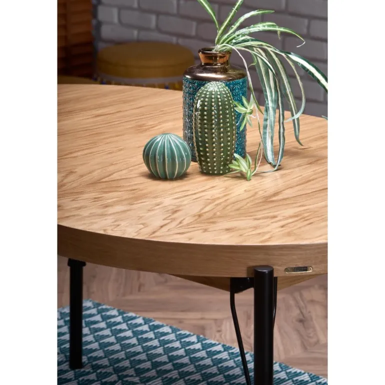 - Moderne udseende: Naturlig eg bordplade og Sorte ben.