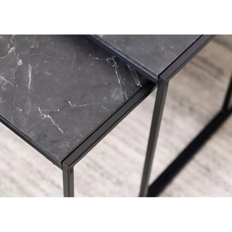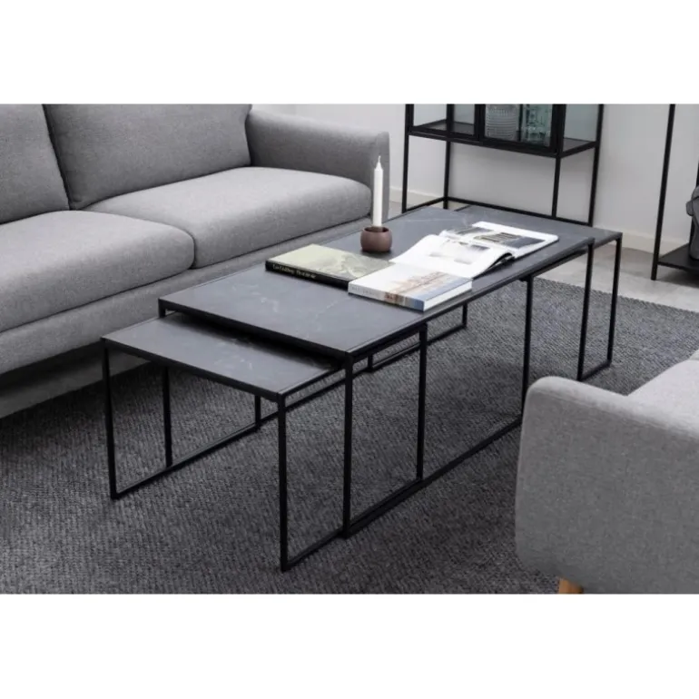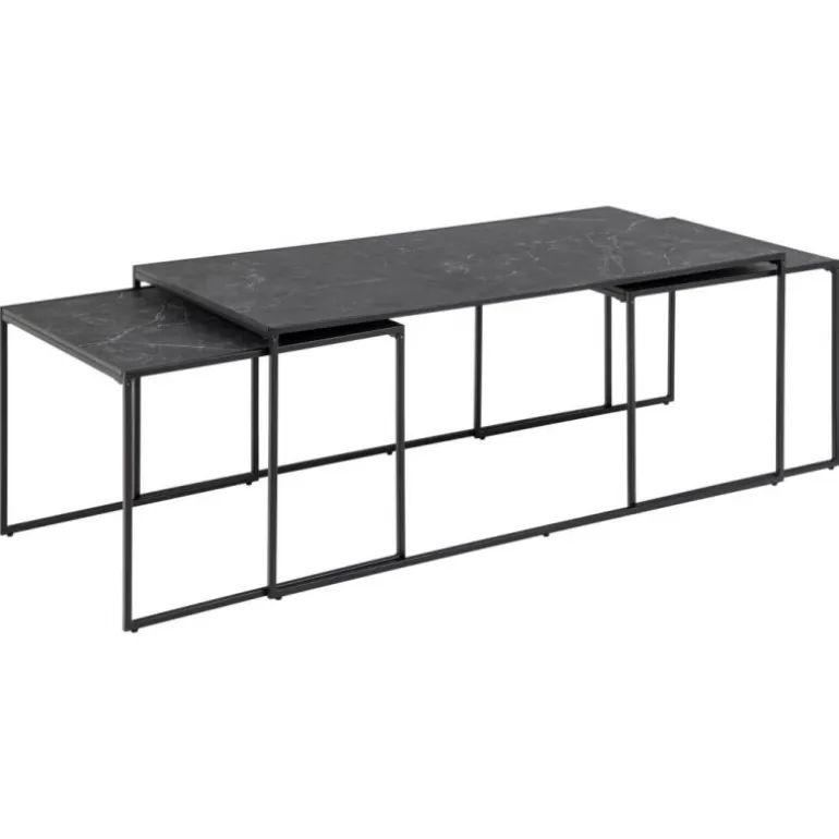 Infinity sofabordssæt melamin marmor print, mat sort stel metal pulverlakeret ru, mat sort, sæt med 3 stk L:120 B:60 H:48 cm