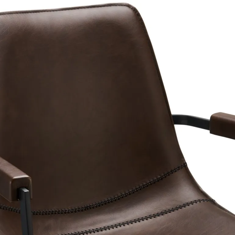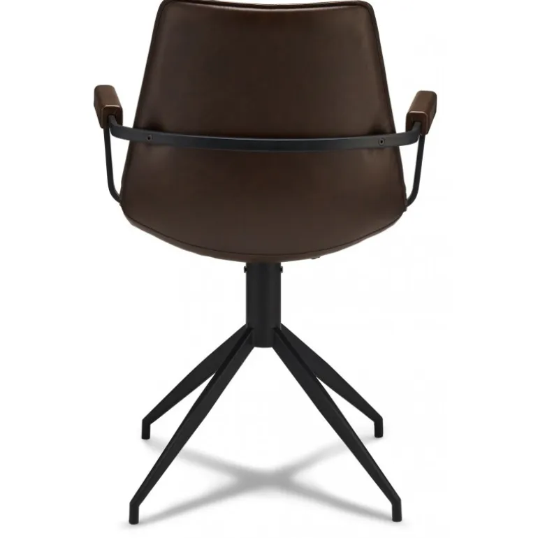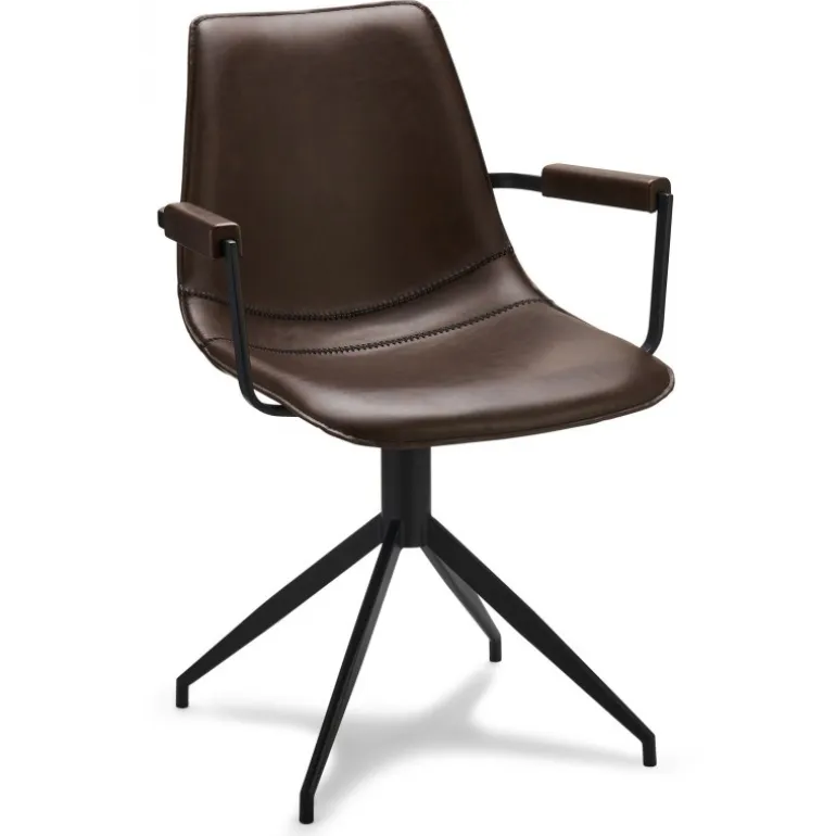 Isabel er en blød og behagelig spisebordsstol, der er polstret i både sæde og ryg slidstærkt kunstlæder. Stolen er designet i mørkebrunt PU læder, og har nogle dejlige puder på armlænet, så man kan sidde behagelig. Isabel kan med den praktiske drejefunktion, bruges både som spisebordsstol og som kontorstol.