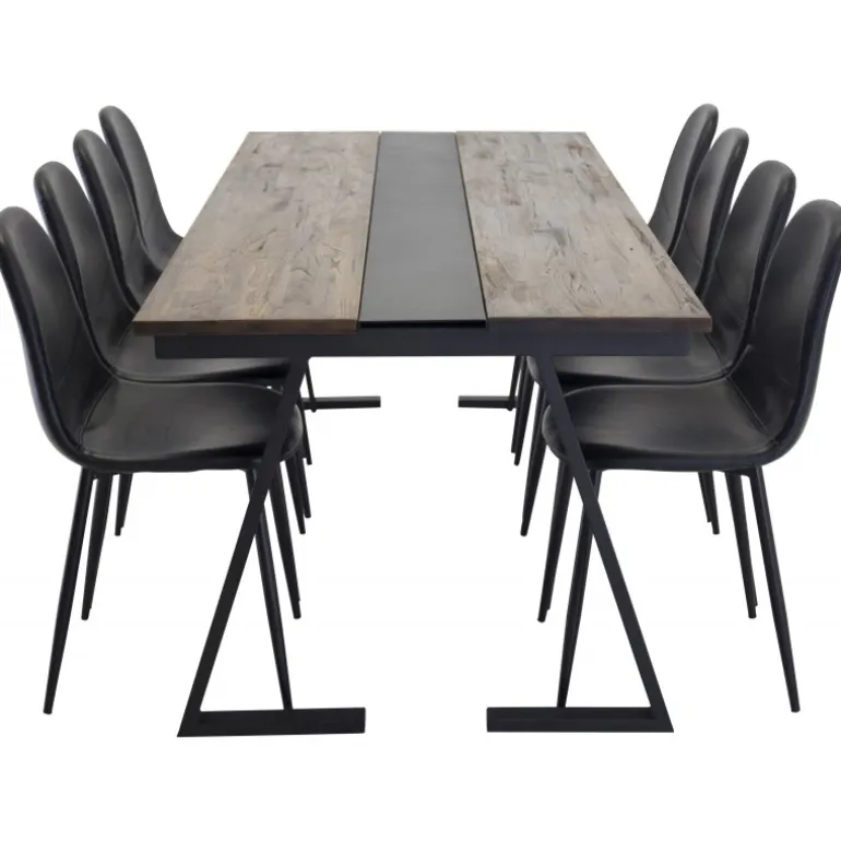 Oplev det elegante Jakarta Rektangulær Spisebordssæt med en smuk teaktræsbordplade og en dekorativ metalplade i midten. Dette sæt inkluderer de tidløse Polar stole, som skaber en perfekt kombination af moderne og hyggelig stil. Perfekt til enhver indendørs spisestue, dette sæt tilføjer både funktionalitet og æstetik. Teaktræ og stål materialer sikrer holdbarhed og et luksuriøst udseende.