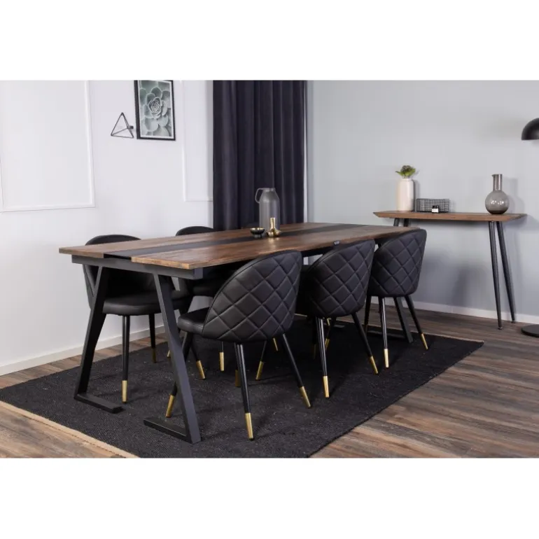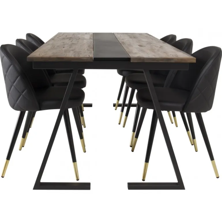 Spisebordet Jakarta i et slankt design, sammen med spisestole Velvet – den perfekte kombination for dem, der ønsker en trendy Spisebordssæt. Stolene har en høj siddekomfort, der inviterer til lange og vidunderlige øjeblikke med socialt samvær!