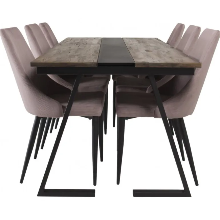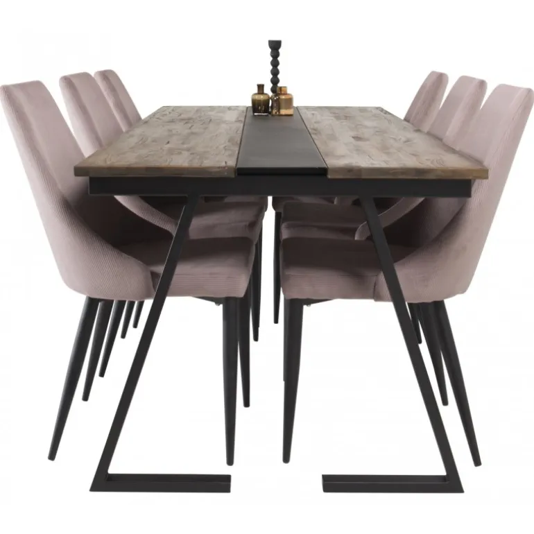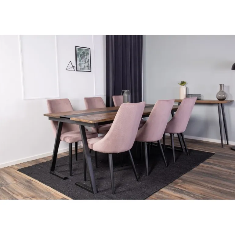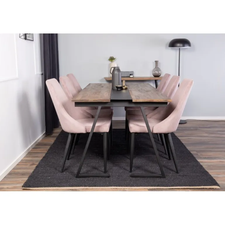 - Moderne Design: Jakarta spisebord med teakbordplade og Leone spisestole i støvet pink.