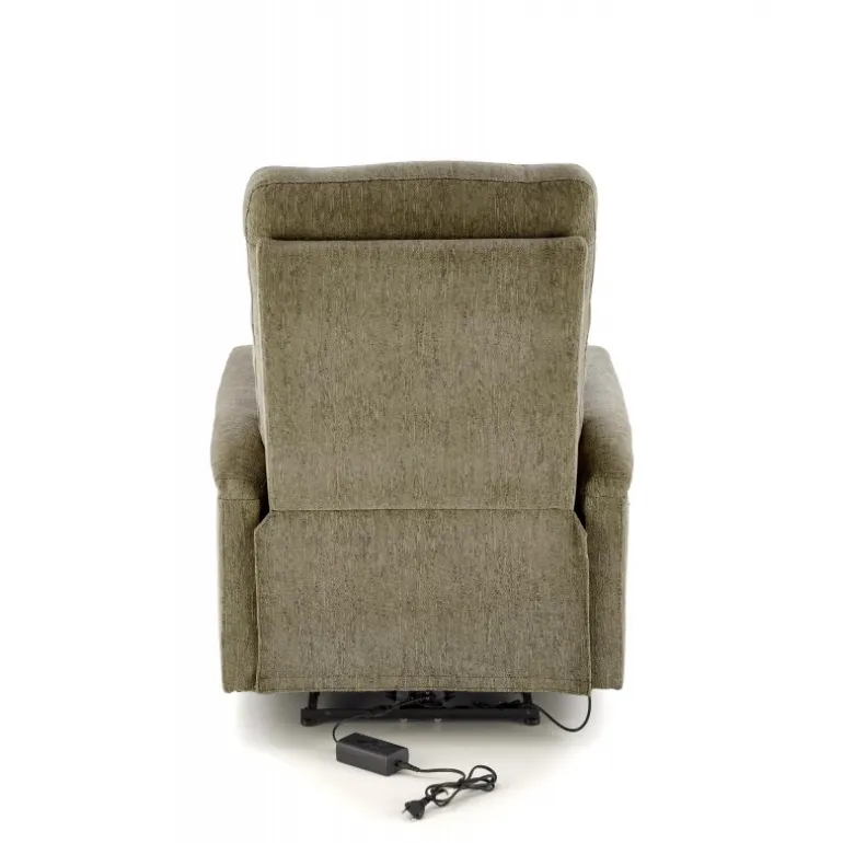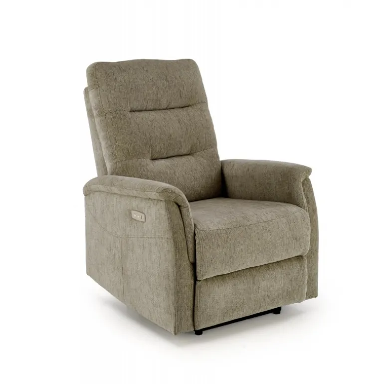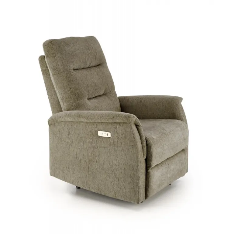 Oplev ultimativ komfort med JAMAL lænestolen i en smuk olivenfarve. Denne lænestol er designet med en elektrisk foldningsfunktion og en praktisk USB-stik, der gør det nemt at oplade dine enheder, mens du slapper af. Den er betrukket med højkvalitetsstof, ODIN#77, der sikrer både holdbarhed og et stilfuldt udseende. Med dimensioner på 80/90-160/105/47 cm tilbyder JAMAL lænestolen rigelig plads og støtte for optimal afslapning. Perfekt til enhver stue, denne lænestol kombinerer funktion og æstetik på bedste vis.
