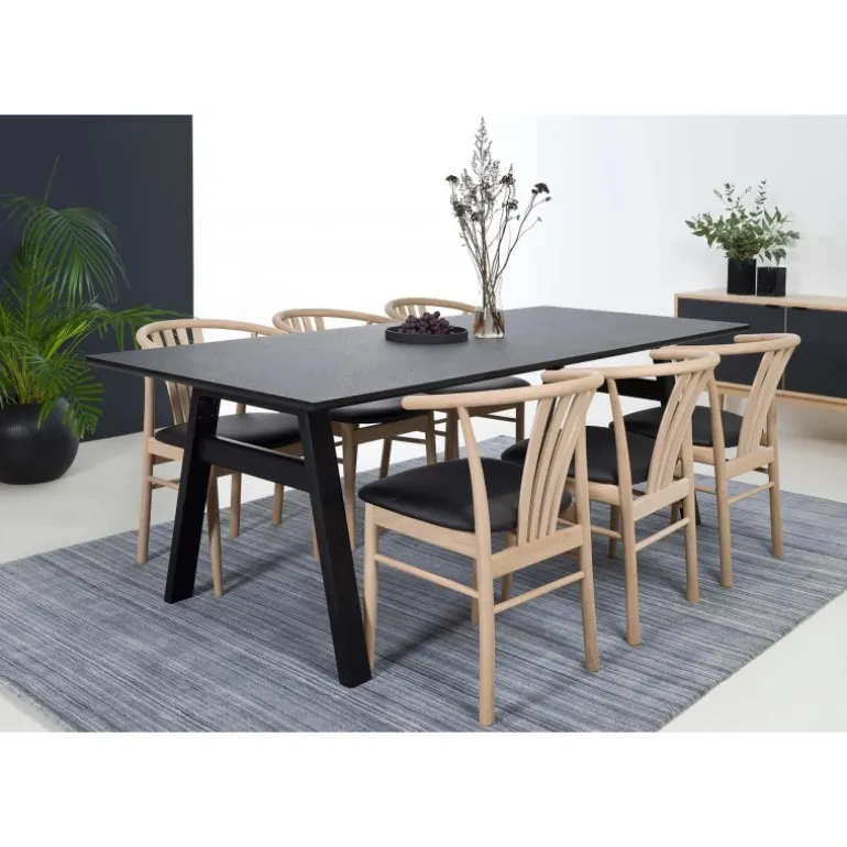 Jane spisebordsstol – ubehandlet eg – sort ægte læder
