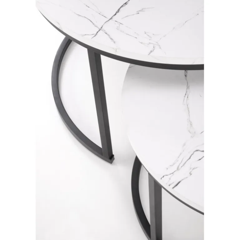 Opgrader din stue med dette JAVA sæt af 2 sofaborde i elegant hvid marmor og Sort design. Bordene er fremstillet af lamineret MDF og pulverlakeret stål for ekstra holdbarhed og stil. Med dimensioner på 79/47 cm og 59/37 cm passer disse borde perfekt sammen eller hver for sig, hvilket giver dig fleksibilitet i din indretning. Perfekt til moderne hjem, hvor funktion og æstetik går hånd i hånd.