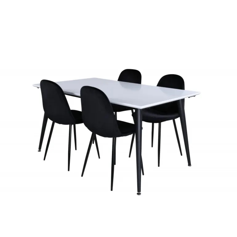 - Komfortable stole: Polar spisestole med blødt velour sæde og stabilt metalstel for ekstra komfort.