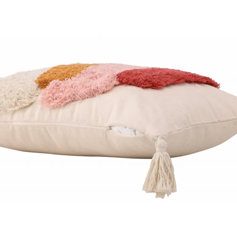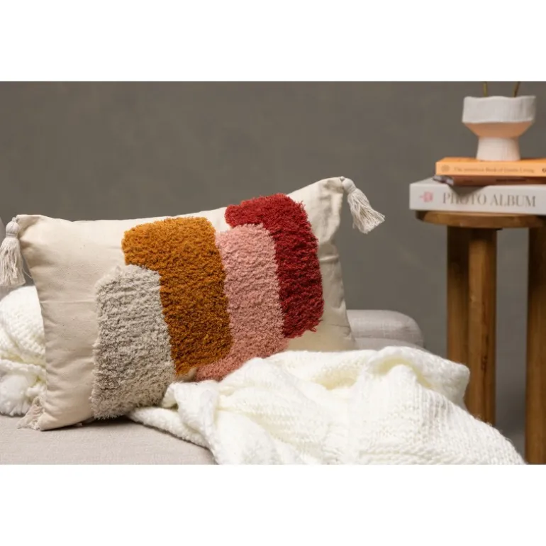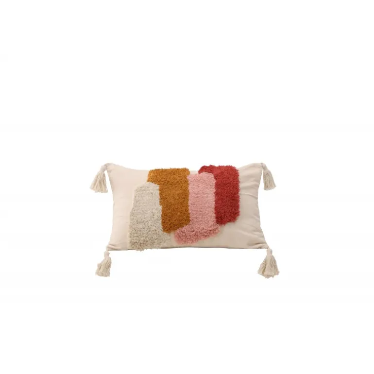 En lang pudevår, der fanger blikket! Joline pudevår har en stilfuld base i hvid og et lækkert mønster i tuftet materiale i farverne hvid, brun, pink og rød. Betrækket har også kvaster i hvert hjørne, hvilket bidrager til et mere legende udtryk. Polyester og bomuldsblandingen er både holdbar og smidig. Dette er virkelig et pudevår, der udstråler kunst og modebevidsthed. Sæt et personligt præg på din indretning med en farverig pude, der skiller sig ud!