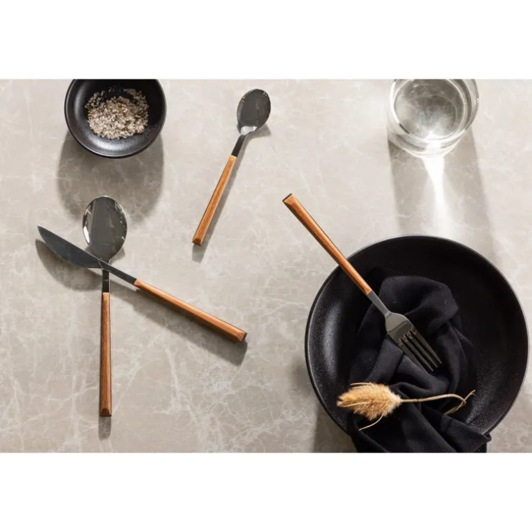 Bestik fra Jubie-serien er en harmonisk blanding af naturlig skønhed og moderne elegance. I en smuk farvekombination af sølv og brun skaber disse redskaber en beroligende atmosfære ved hvert måltid. Håndtagene er lavet af ABS-materiale med træimitation, hvilket giver en varm og organisk følelse til hver gaffel, kniv og ske. Den jordnære farvepalet skaber en følelse af ro, og de afrundede kanter tilføjer en blødhed, der forbedrer hele borddækningen. Fremstillet med præcision og holdbarhed, er bladene lavet af stål, hvilket giver bestikket pålidelig kvalitet og funktionalitet. Jubie-bestik er ikke blot køkkenredskaber; de er kunstneriske detaljer, der løfter din spiseoplevelse. Uanset om det er til et simpelt hverdagsmåltid eller en festlig lejlighed, vil Jubie-bestik være den perfekte ledsager. Skab en rolig og indbydende atmosfære ved dit spisebord med disse redskaber, der kombinerer tidløst design med et strejf af naturlig skønhed. Anbefales ikke til opvaskemaskine.