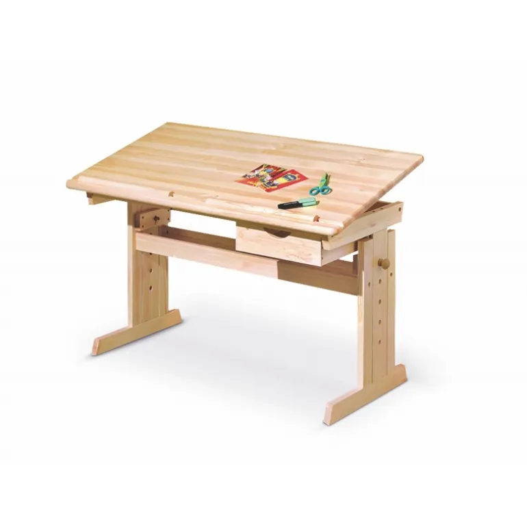 JULIA skrivebord i farven fyrretræ er den perfekte løsning til dit hjemmekontor. Dette skrivebord er designet med en justerbar højde og vinkel på bordpladen, hvilket gør det ideelt til forskellige arbejdssituationer og behov. Med dimensionerne 109/55/63÷96 cm og lavet af lakeret fyrretræ, kombinerer det både funktionalitet og æstetik. Fyrretræsfarven tilføjer et naturligt og varmt touch til dit rum, hvilket skaber en behagelig arbejdsmiljø.