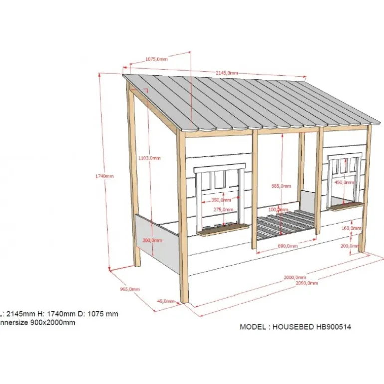 - Hyggeligt husdesign med vinduer – både seng og legehjørne