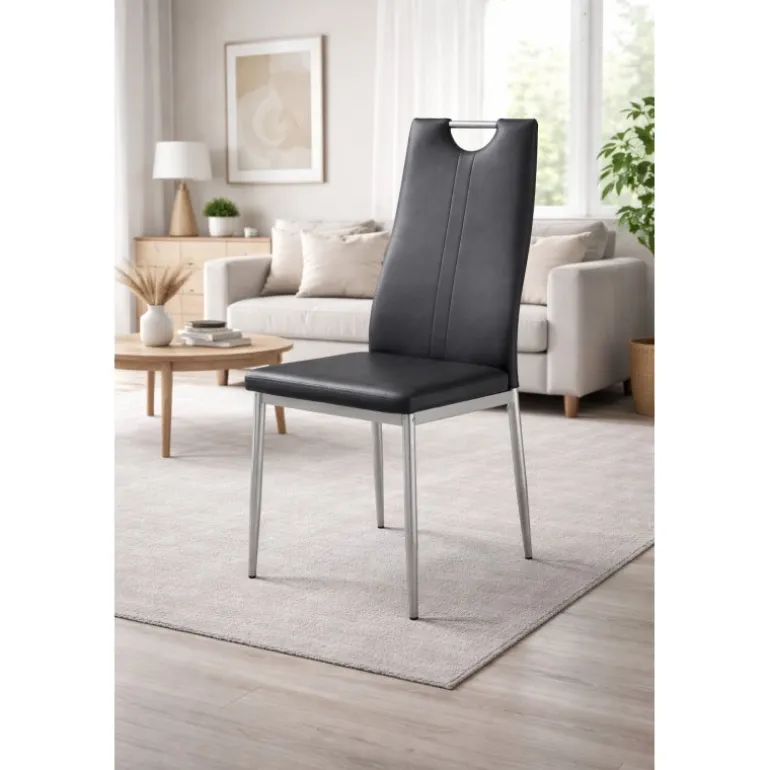 Oplev komfort og stil med K202 Spisebordsstolen i Sort. Denne Spisebordsstol er fremstillet af pulverlakeret stål og økologisk læder, hvilket sikrer både holdbarhed og elegance. Med dimensionerne 44/59/97/48 cm passer den perfekt ind i ethvert rum. Ideel til både hjemmet og kontoret, tilbyder K202 Spisebordsstolen en moderne æstetik og en behagelig siddeoplevelse.
