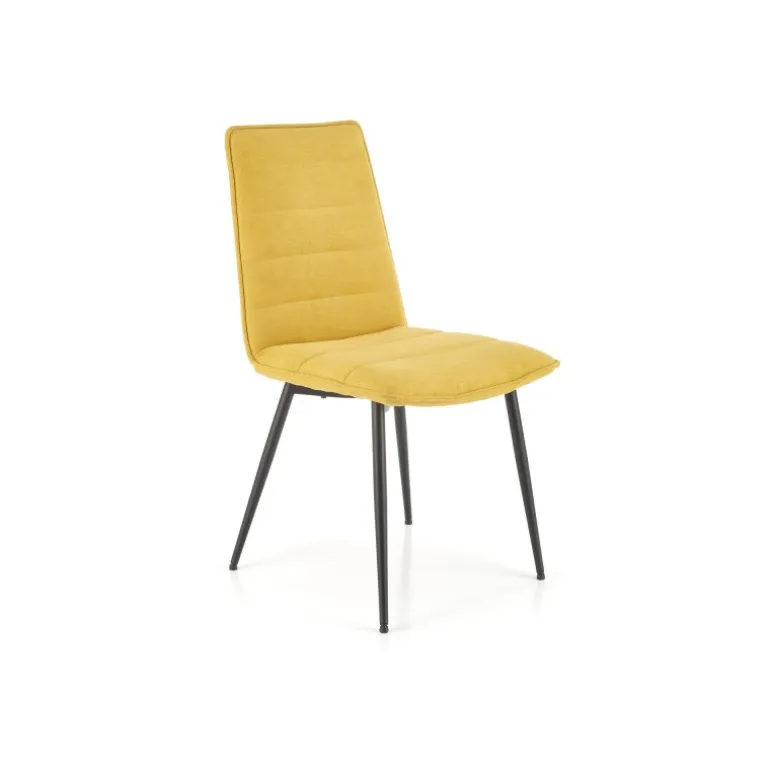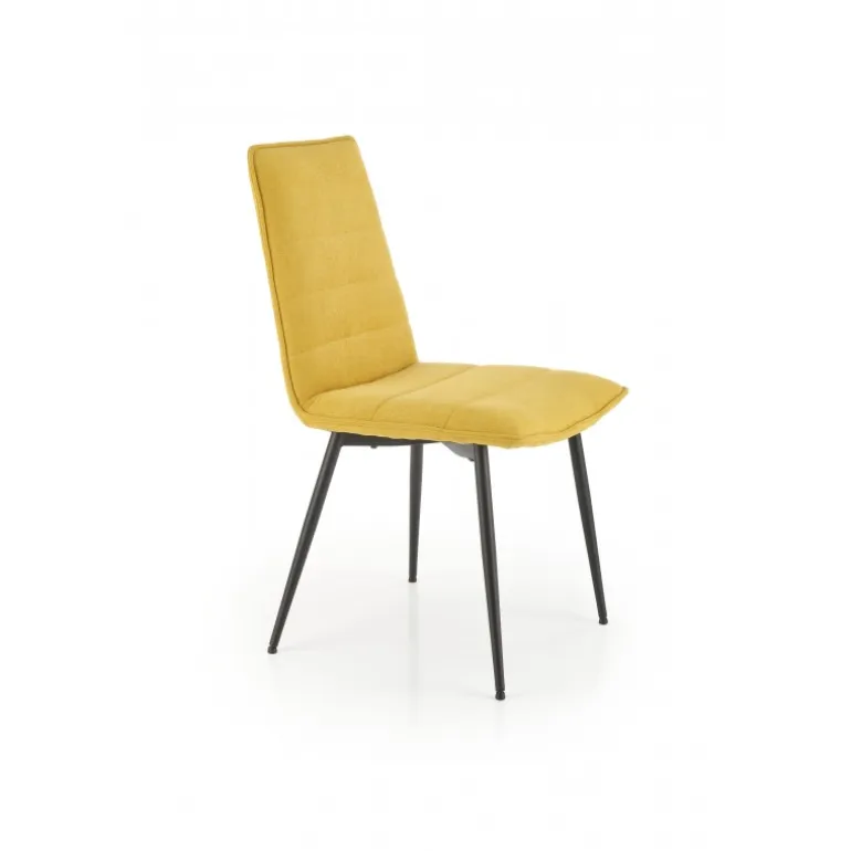 K493 Spisebordsstol i sennepsfarvet stof med pulverlakeret stål er den perfekte blanding af stil og komfort til dit hjem. Med sin moderne og elegante design passer den perfekt ind i ethvert rum. Spisebordsstolen er robust og holdbar, hvilket sikrer langvarig brug. Nyd den ergonomiske siddeoplevelse, som denne Spisebordsstol tilbyder.