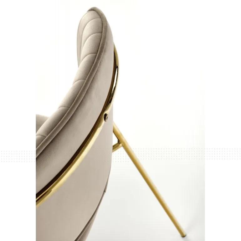 - Moderne design: Elegant beige velourstof kombineret med kromstål.