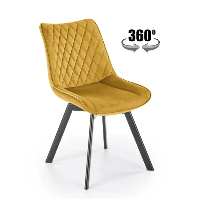 Opgrader din indretning med vores K520 Spisebordsstol i sennepsfarve og Sort. Denne moderne Spisebordsstol kombinerer fløjlsblødt stof med pulverlakeret stål for et stilfuldt og robust design. Med dimensionerne 45/63/80/42 cm og en 360 graders drejefunktion, tilbyder den både komfort og fleksibilitet. Perfekt til både hjemmet og kontoret, vil denne Spisebordsstol tilføje et elegant touch til ethvert rum. Sennepsfarven (BLUVEL 68) giver et unikt og trendy look, der skiller sig ud.