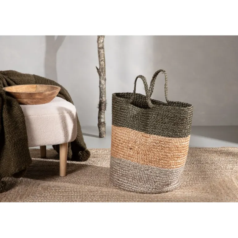 Denne flotte opbevaringskurv fra Kanpur-serien i flettet jute har en lækker model og stilfulde farver! Den fungerer både som opbevaring og som en stilfuld interiørdekoration – de bedste to verdener. Kurven er flettet i farverne grå, grøn og neutral i et bredt, stribet mønster. Den kan også bruges som en potte, men så kræves der først en fugtsikker inderpotte. Gør dit hjem smartere med en praktisk opbevaringsløsning!